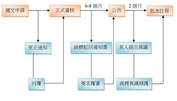 請參閱附載的韓國商標申請簡單流程圖。 |