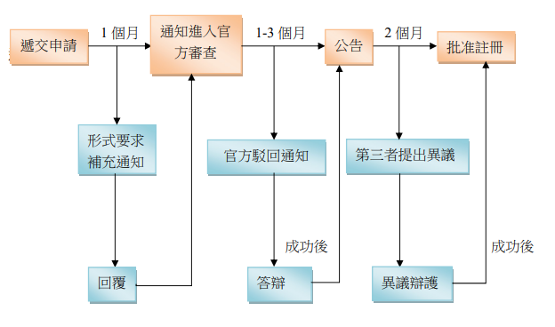 從商標申請直至獲得註冊,在順利的情況下,澳洲知識產權局通常需要 4 至 6 個月時間處理。 如在期間澳洲知識產權局提出駁回或者第三方提出異議,則需要提出答辯,延長整體申請期 間。 |